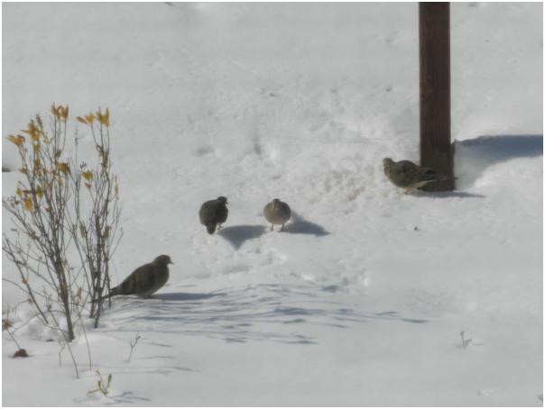 By Monday the doves and the dog were happily back to their routines in the yard and the snow was melting fast….just in time for my friend Kate to visit!
