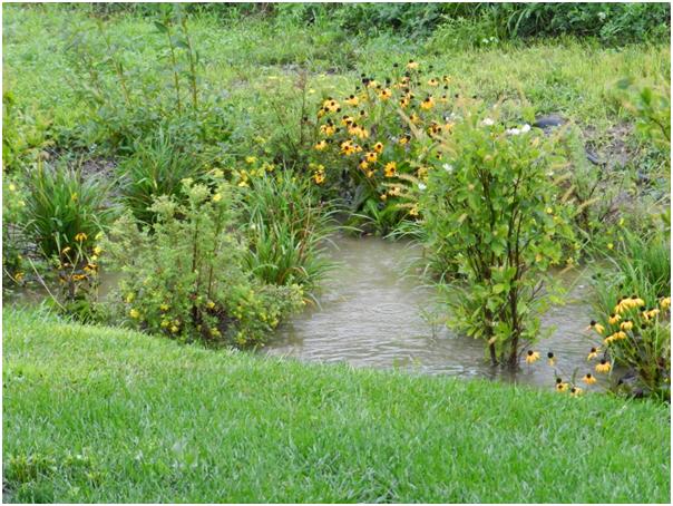 The “rain garden” started filling almost immediately. Believe it or not, there’s a big drain under all of that water.